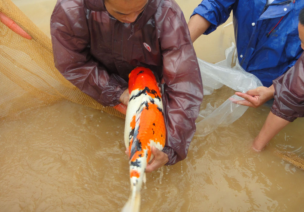 我場精心挑選體型壯大、花紋優(yōu)美、血統(tǒng)優(yōu)良的日本進口錦鯉作為親本